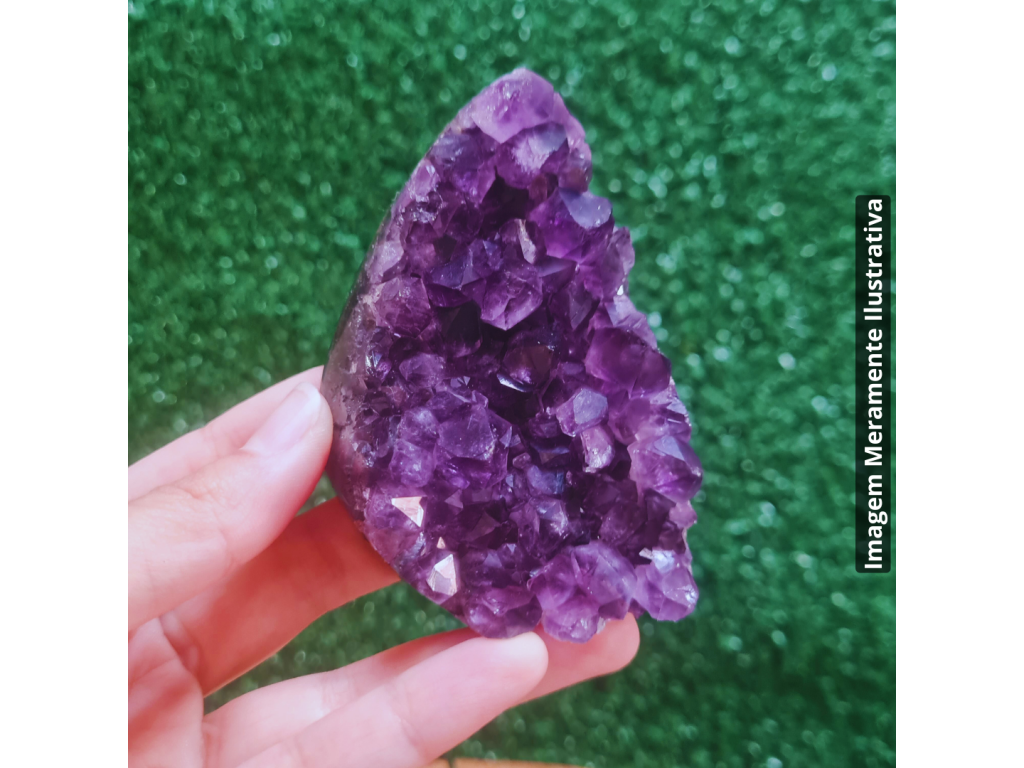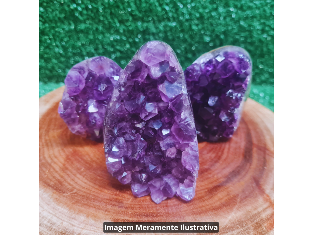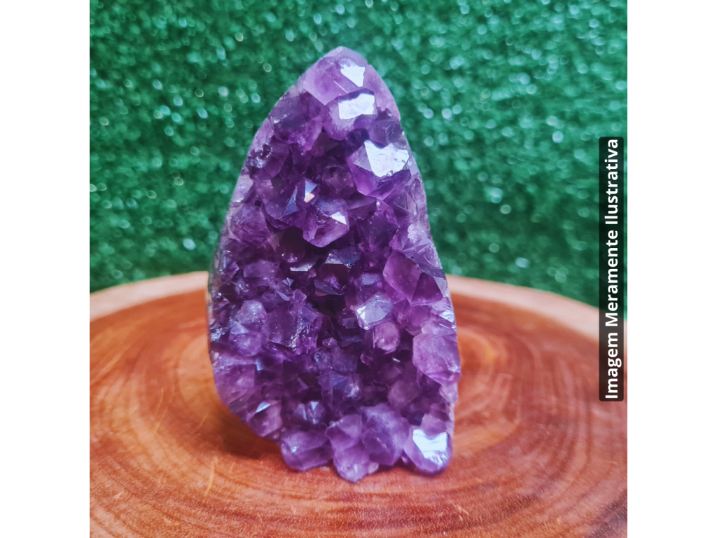 A Drusa de Ametista Polida combina a beleza natural e a intensa energia da Ametista em uma peça única. Em formato de drusa (múltiplos cristais conectados a uma base), ela potencializa a vibração do cristal, tornando-se um poderoso gerador de energia e um harmonizador de ambientes. Seu formato polido na base permite que se apoie de forma estável, enquanto a face dos cristais brutos mantém a energia pura e forte da natureza .