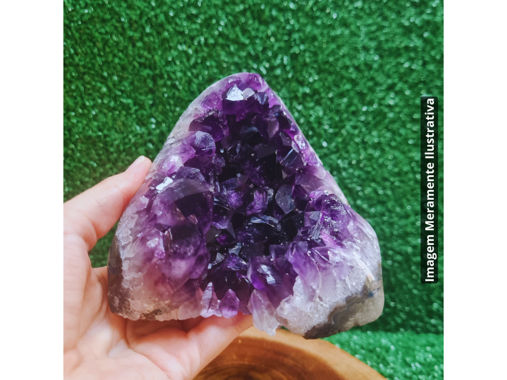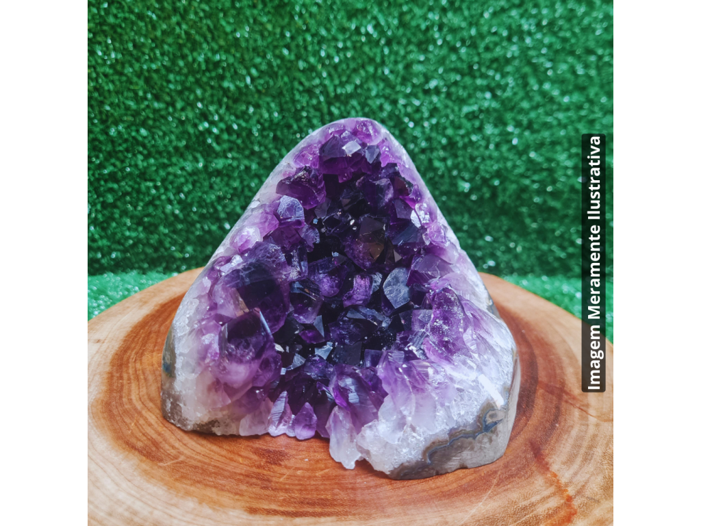 A Drusa de Ametista Polida combina a beleza natural e a intensa energia da Ametista em uma peça única. Em formato de drusa (múltiplos cristais conectados a uma base), ela potencializa a vibração do cristal, tornando-se um poderoso gerador de energia e um harmonizador de ambientes. Seu formato polido na base permite que se apoie de forma estável, enquanto a face dos cristais brutos mantém a energia pura e forte da natureza .